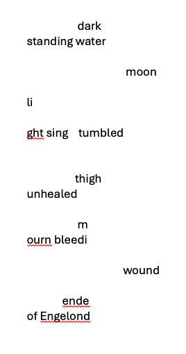 The frost is thick on my windowsill as I write this. Much of my practice involves outdoor fieldwork which I love – but today I am quite pleased to be indoors in the warm, my two dogs snoring and sighing as they dream. As I sit here at my desk, I am reflecting on the ongoing medievalist aspects of my work. They might seem at odds with my love of experimental and avant-garde poetic forms, but they are actually at the heart of my poetic engagement with place. Several of my poetry publications engage explicitly with the shaping presence of medieval and prehistoric pasts within present places: Tenter (Guillemot, 2020) develops its poetry out of unhealed cultural wounds resulting from the 1066 Norman Conquest, framed by the making of the Bayeux Tapestry, while The Sleeping Place (Guillemot, 2023) stages textually multiple and shifting pasts suggested by the archaeological excavations of a Saxon burial site discovered near my family home. My current project, the recently published Wastelands builds on this body of work, engaging with medieval tropes of pilgrimage, quest, and wounded lands, partly as filtered through the lens of nineteenth and twentieth-century writers but also through direct engagement with medieval literature: de Troyes, Chaucer, the ‘Gawain poet’, Malory etc. I have written at length elsewhere about Wastelands and my archaeological and archival practices, and about my navigation of extended textual spaces in the long prose poem (Long Poem Magazine, issue 34), and so here I am only going to tease out here these medieval aspects.
